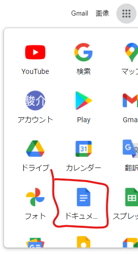 まずは、ブラウザソフトを開いて Google ドキュメント を開きます。
